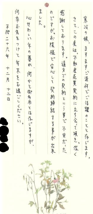 遠方での契約という事で不安だったのですが、お蔭様で安心して契約締結する事が出来ました。