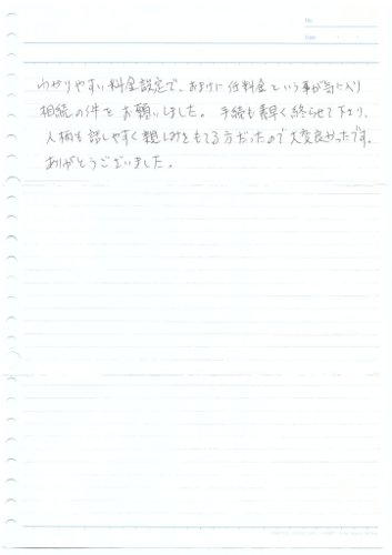 相続の件をお願いしました。手続も素早く終らせて下さり、